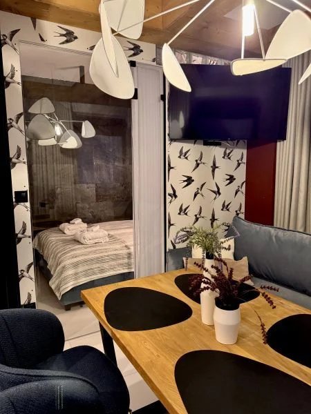 Studio jest przeznaczone dla gości ceniących wygodę w układzie typu studio: salon z sofą z funkcją spania oraz aneks sypialny z łóżkiem małżeńskim. Dzięki temu możliwy jest komfortowy wypoczynek dla pary lub małej grupy. -