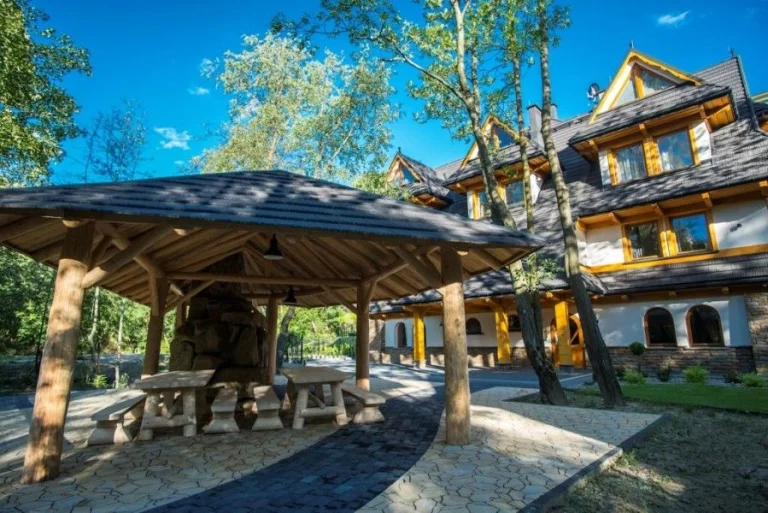 To nowoczesny i luksusowy kompleks, który nawiązuje do regionalnej architektury Podhala oraz stylu Witkiewicza. Wyróżniają go m.in. rzeźbione detale, drewniane balustrady i elewacja z kamienia naturalnego. -