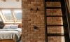 Wyjątkowy pokój, w którym miękkie materiały w ciepłych kolorach doskonale przełamują surowość ceglanej ściany oraz industrialnego stylu. Przestronny pokój o wysokich sufitach rozciąga się przez dwie kondygnacje, wypełniając wnętrze naturalnym światłem dzięki dużemu przeszkleniu. Wygodne łóżko i przyjemny w dotyku koc sprawiają, że pokój staje się idealnym miejscem na relaks.
