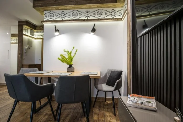 Apartament obejmuje 1 sypialnię, 1 łazienkę oraz część dzienną (salon). Układ zapewnia wygodę podczas krótkich i dłuższych pobytów w Zakopanem. -
