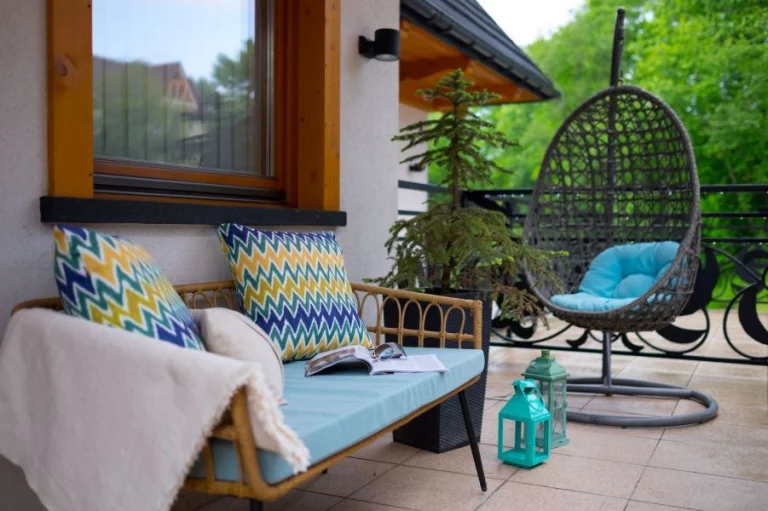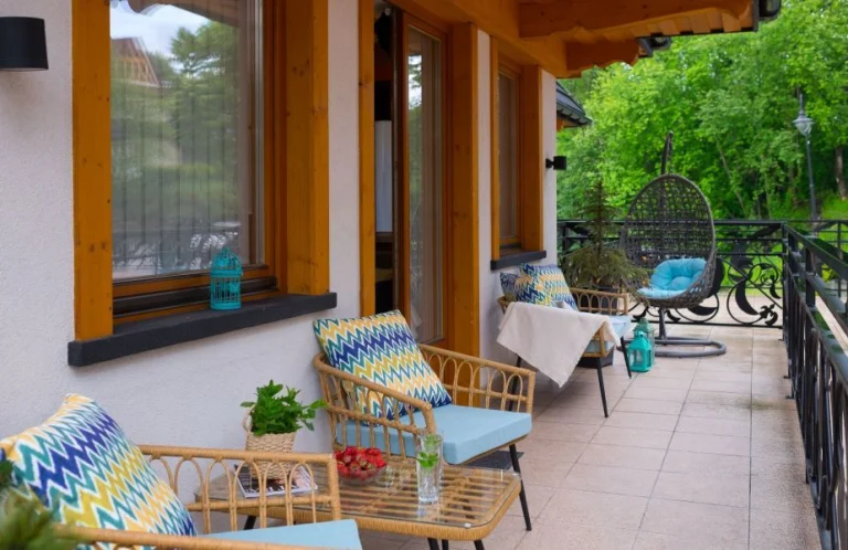 Tak, ze strefy dziennej można wyjść na bardzo przestronny taras. To miejsce relaksu z komfortowymi meblami ogrodowymi oraz kokonem, idealne na odpoczynek po górskich wycieczkach w Zakopanem. -