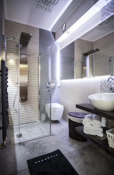 W łazience znajduje się nowoczesna strefa prysznicowa z deszczownicą oraz hydromasaż, zapewniające komfort po dniu na szlaku. -