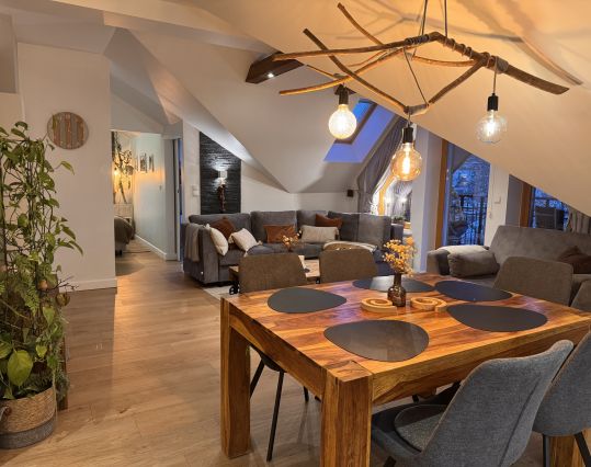 W nowoczesnym budynku z windą i podziemnym garażem znajdują się dobrze wyposażone i przytulne apartamenty w większości z kominkami i z widokiem na Tatry, a szum przepływającego tuż obok potoku górskiego zapewni znakomity relaks po długich górskich wędrówkach oraz wprawi Państwa w cudowny nastrój.